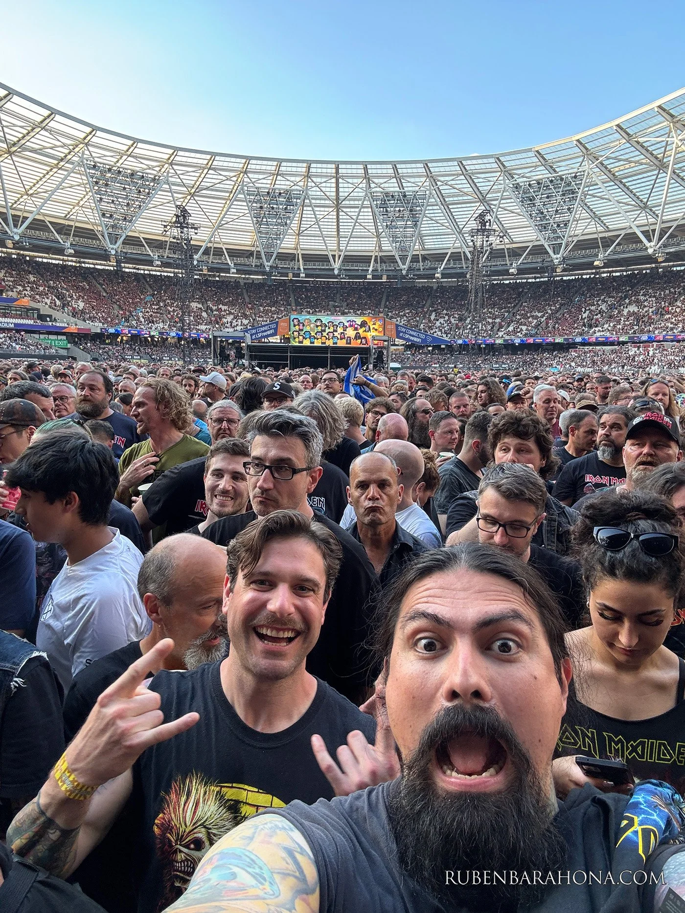 When you get a Maiden tattoo make sure you go with a person who loves the band as much as you do, this is my friend and client Ben and myself. we went to London to see the 50th anniversary tour - Run for your lives. it was one of the best concerts of my life!